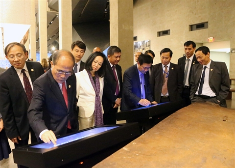 | Le président de l’Assemblée nationale, Nguyên Sinh Hùng (2e à gauche), au Musée du 11 septembre, le 1er septembre à New York. |