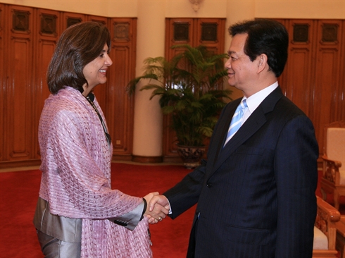 | Le Premier ministre Nguyên Tân Dung et la ministre colombienne des Affaires étrangères, Maria Angela Holguin, le 27 février à Hanoi. |
