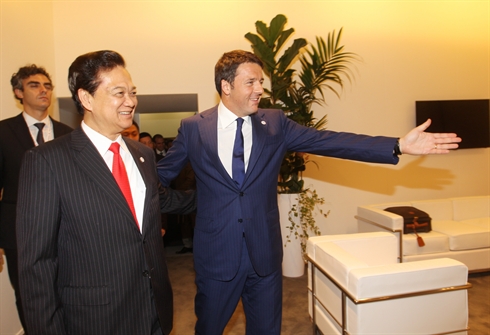 | Le Premier ministre Nguyên Tân Dung (gauche) et son homologue italien Matteo Renzi, le 17 octobre à Milan, Italie. |