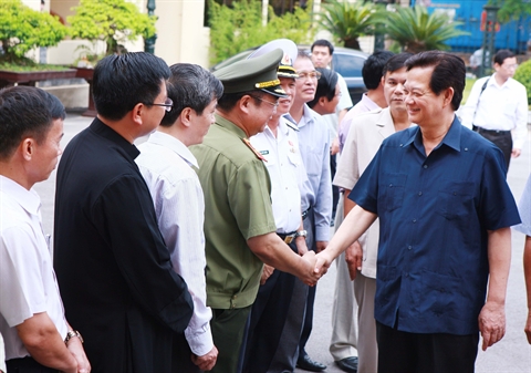 | Le Premier ministre Nguyên Tân Dung (droite) rencontre le 6 juillet des électeurs du district de Thuy Nguyên, ville de Hai Phong (Nord). |