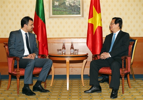 | Le Premier ministre Nguyên Tân Dung (droite) et président de l'Alliance des députés d'amitié Bulgarie - Vietnam, Yavor Iliev Haytov, le 5 juin à Sofia |