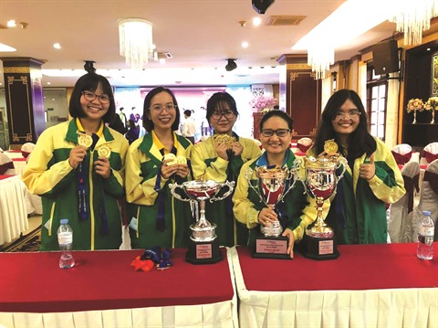 | Thuy Tiên (1re à droite) et ses coéquipières de l’équipe de Hô Chi Minh-Ville. |