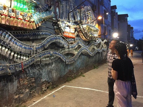 L’exposition ''Tubes de respiration", récemment organisée à Hanoï, s’est déroulée chez un particulier. L’exposition pour laquelle l’artiste Nguyên Thê Son a endossé le rôle de conservateur, met l’accent sur la vie citadine dans la capitale. Nguyên Thê Son a réalisé cinq sculptures représentant des maisons tubes dont les façades donnent sur la rue et sont étouffées par des panneaux publicitaires gigantesques. Cette image, on la retrouve partout à Hanoï. Au pied des bâtisses, les vendeurs ambulants cherchent à gagner leur vie péniblement et les motos s’entremêlent dans un rythme haletant. L’œuvre révèle les préoccupations de l’artiste face à la physionomie de Hanoï et son urbanisation rapide récente.