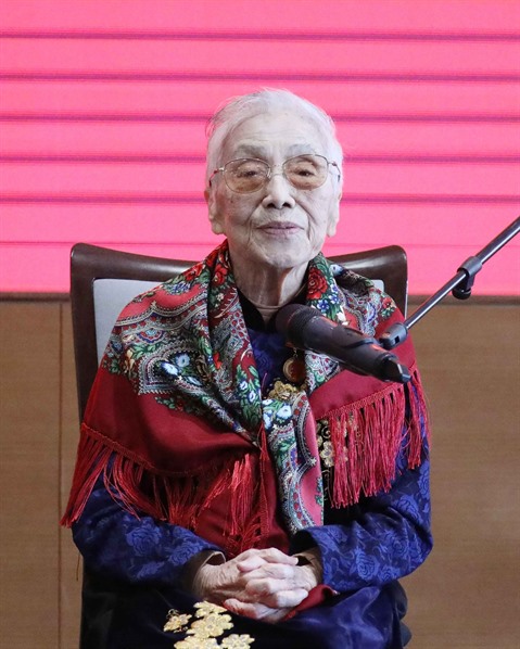 | L'ancienne vice-présidente Nguyên Thi Binh est un exemple vivant de patriotisme, d'intelligence et du rôle des femmes vietnamiennes dans la construction et la défense du pays au cours de ces 80 dernières années. |