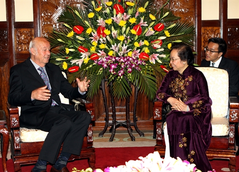 | La vice-présidente de la République, Nguyên Thi Doan, et le président du Village international SOS, Helmut Kutin, le 3 janvier à Hanoi. |