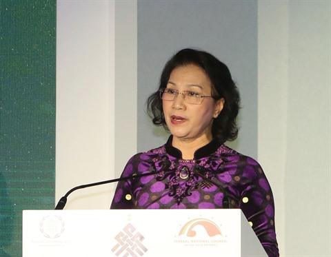 | La présidente de l’Assemblée nationale vietnamienne Nguyên Thi Kim Ngân lors du 11e Sommet des présidentes de parlement. |