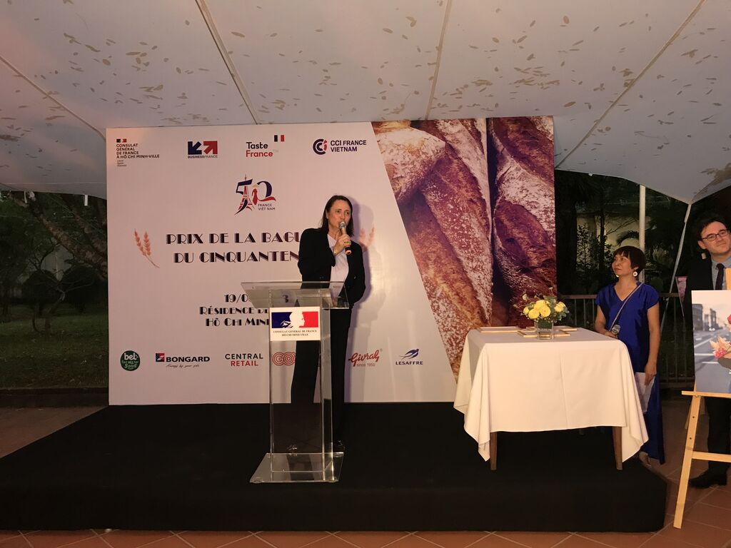 Lors de la cérémonie de remise du prix, tenue en soirée du 19 mai à la résidence française, Emmanuelle Pavillon-Grosser, consule générale de France, s’est réjouie d’organiser ce concours, en coopération avec la Chambre de commerce et d’industrie France - Vietnam (CCIFV) et Business France, qui réunit des boulangers professionnels comme amateurs pour honorer le banh mi vietnamien et la baguette française.