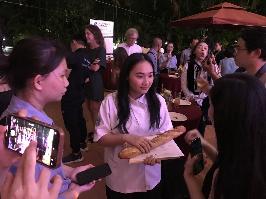| Nguyên Thi Nga, 26 ans, enseignante à l’école Boulangerie française, se voit décerner le premier prix de la baguette du cinquantenaire. |