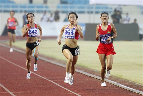| Nguyên Thi Oanh (gauche) en finale du 3.000 m steeple aux SEA Games 31. |