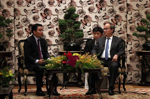 | Rencontre entre le secrétaire du Comité du Parti pour Hô Chi Minh-Ville, Nguyên Thiên Nhân (droite), et Vilayvong Bouddakham, présidente de délégation de l'Association d'amitié Laos - Vietnam. |