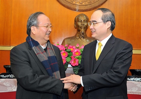 | Le président du Comité central du FPV, Nguyên Thiên Nhân (droite), et le président du Conseil épiscopal du Vietnam, Bùi Van Doc. |