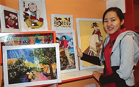 | Jeune et ambitieuse, Huyên est déjà la patronne d’une société de vente de tableaux faits à partir de tissus. |
