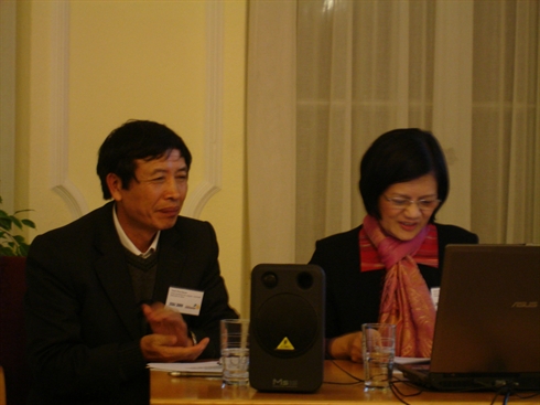 | Le couple Dung et Khuê lors d’un colloque scientifique en Allemagne. |