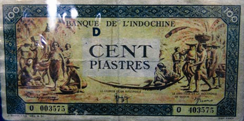 | Nguyên Van Thao et une partie de sa collection de billets de banque. |
