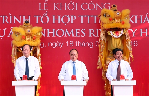 | Le Premier ministre Nguyên Xuân Phuc (centre) à la mise en chantier du quartier résidentiel Vinhomes Riva City - Hai Phong |