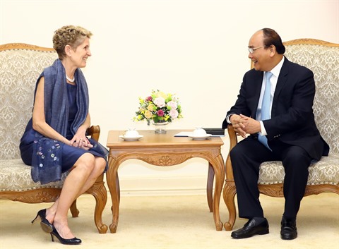 | Le Premier ministre Nguyên Xuân Phuc et la Premier ministre de l’Ontario Kathleen Wynne lors de leur rencontre le 6 décembre à Hanoï. |