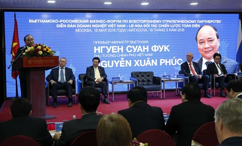 Nguyên Xuân Phuc a rappelé aux entreprises russes les avantages du Vietnam, tels que membre de l'ASEAN et sa participation à 13 grands accords commerciaux internationaux, notamment le TPP (Accord de partenariat transpacifique), ainsi qu'une main-d’œuvre abondante et un marché de consommation potentiel. Il a également exhorté les entreprises vietnamiennes à exporter des produits agricoles et électroniques, du textile-habillement en Russie et à y importer des marchandises de qualité à des prix compétitifs, avant de souhaiter que les deux gouvernements accélèrent la mise au point de mécanismes d'affaires à l'avenir.