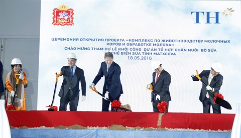 Le Premier ministre Nguyên Xuân Phuc a assisté mercredi 18 mai à la cérémonie de mise en chantier du complexe d’élevage bovin laitier du groupe TH True Milk à Volokolamsk, une ville de l’oblast de Moscou. Il a souligné la signification de l’accord de libre-échange entre le Vietnam et l’Union économique eurasiatique, qui favorise la coopération russo-vietnamienne dans les services et l’investissement. Estimant que la Russie est un grand consommateur de lait, il a affirmé que ce projet de TH True Milk contribuerait au développement de l’agriculture de cette région. Il a également souhaité que ce complexe devienne un ouvrage exemplaire de la coopération agricole entre la Russie et le Vietnam.