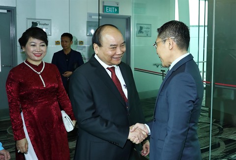 Le Premier ministre Nguyên Xuân Phuc, son épouse et la haute délégation vietnamienne on été accueillis à l'aéroport par le Secrétaire d'État singapourien et des représentants du ministère des Affaires étrangères de Singapour. Du côté vietnamien, était présent le personnel de l'ambassade du Vietnam.