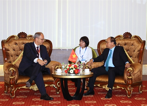 | Le Premier ministre vietnamien Nguyên Xuân Phuc (droite) a eu une rencontre avec l’ambassadeur allemand Christian Berger, en marge de la conférence sur le développement du delta du Mékong à Cân Tho. |