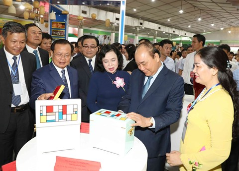 | Le Premier ministre Nguyên Xuân Phuc (2e à droite) au Salon des produits agricoles et artisanaux à Hanoï. Photo : Van Diêp/VNA/CVN |