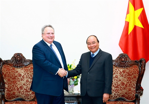 Lors d'une réception accordée le 13 février à Hanoï au ministre grec des Affaires étrangères et de la Coopération, Nikos Kotzias, en visite officielle au Vietnam, le chef du gouvernement Nguyên Xuân Phuc a déclaré que le Vietnam et la Grèce, avec la coopération de plus de 40 ans depuis l'établissement des relations diplomatiques bilatérales, devraient renforcer des rencontres et visites des délégations à tous les niveaux afin de promouvoir les relations de coopération bilatérale dans des domaines potentiels.