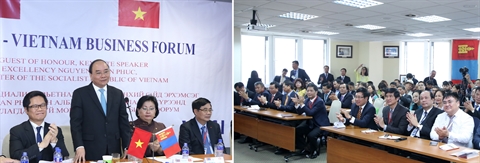 | Nguyên Xuân Phuc (debout) lors de la parole au forum d'affaires Vietnam-Mongolie, le 14 juillet dans |
