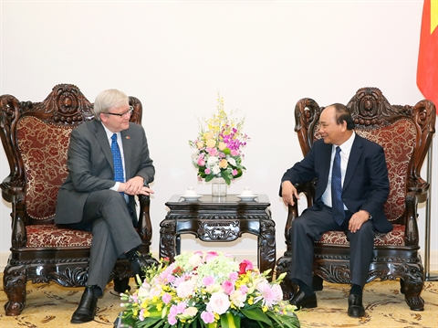 | Le chef du gouvernement vietnamien Nguyên Xuân Phuc (droite) a reçu le 24 juin l’ancien Premier ministre australien Kevin Rudd. |