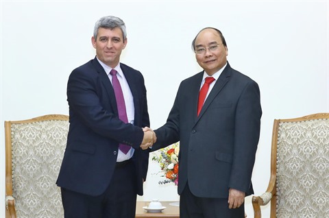 | Le Premier ministre vietnamien Nguyên Xuân Phuc (droite) et le ministre cubain de la Communication, Jorge Luis Perdomo Di-Lella. |