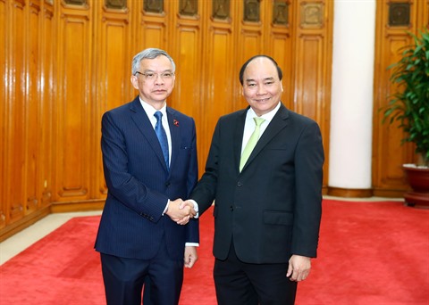 | Le Premier ministre Nguyên Xuân Phuc (droite) et le ministre lao des Ressources naturelles et de l'Environnement, Sommad Pholsena, le 24 décembre à Hano |