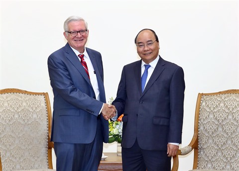 | Le sous-secrétaire d’État au Commerce des États-Unis, Gilbert Kaplan (gauche), reçu par le Premier ministre Nguyên Xuân Phuc, le 11 septembre. |