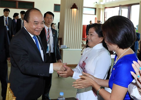 | Le Premier ministre Nguyên Xuân Phuc avec des Viêt kiêu au Cambodge, le 5 avril à Siem Reap. |