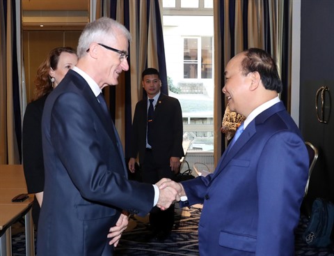 | Le ministre-président de la Région wallonne belge Willy Borsus (gauche) reçu par le Premier ministre Nguyên Xuân Phuc le 16 octobre à Bruxelles. |