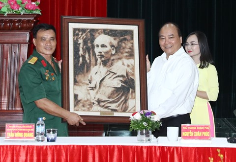 | Le Premier ministre Nguyên Xuân Phuc (droite) remet un tableau du Président Hô Chi Minh à un repr |
