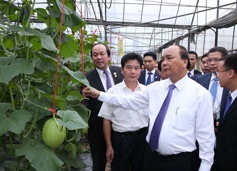 | Le Premier ministre Nguyên Xuân Phuc (droite) dans la zone agricole high-tech de Bagui Tianyuan au Guangxi, le 11 septembre. |