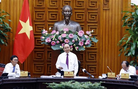 | Le Premier ministre Nguyên Xuân Phuc (debout) lors de sa séance de travail avec la VTV, le 11 juillet. |