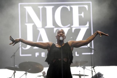 | Liv Warfield lors de l’édition 2015 du Nice Jazz Festival. |