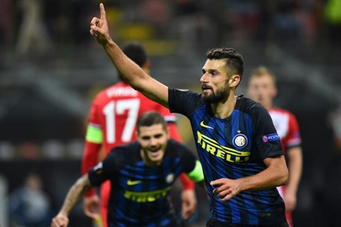 | Antonio Candreva, auteur du but de l'Inter face à Southampton, le 20 octobre à San Siro. |