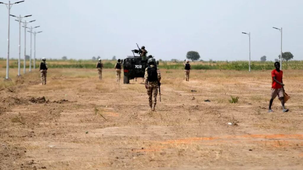 | Photo d’illustration des forces de sécurité nigérianes patrouillent à Ngarannam, État de Borno, Nigeria. |