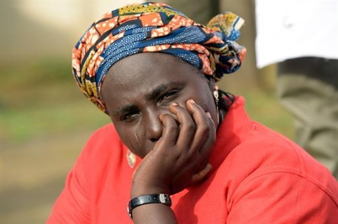 | La mère d'une lycéenne enlevée par Boko Haram lors d'une manifestation à Abuja le 14 octobre. |