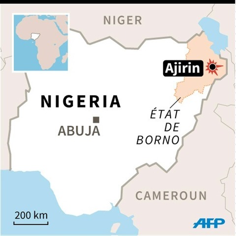 | Localisation d'Ajirin, à 50 km de Maiduguri, où plusieurs soldats ont été tués dans une embuscade du groupe jihadiste Boko Haram |