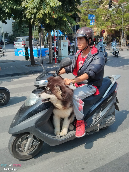 Pourtant, un de mes concitoyens, propriétaire d’un superbe husky, s’était enhardi à lui faire faire une promenade matinale… à la vietnamienne. C’est-à-dire, lui sur une moto et le chien, tenu en laisse, courant à côté de la moto.