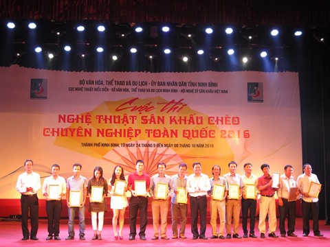 L’édition 2016 du concours national d'art scénique de chèo professionnel 2016 a réuni 16 troupes, c’est-à-dire environ 800 artistes, qui ont présenté 27 pièces portant sur l’Humanité, le courage et le sens du sacrifice des ancêtres dans la défense et l’édification du pays, l’héroïsme révolutionnaire durant les deux guerres contre les Français et les Américains, ou encore les exploits du Parti communiste et du peuple du Vietnam durant cet actuel Renouveau lancé en 1986.