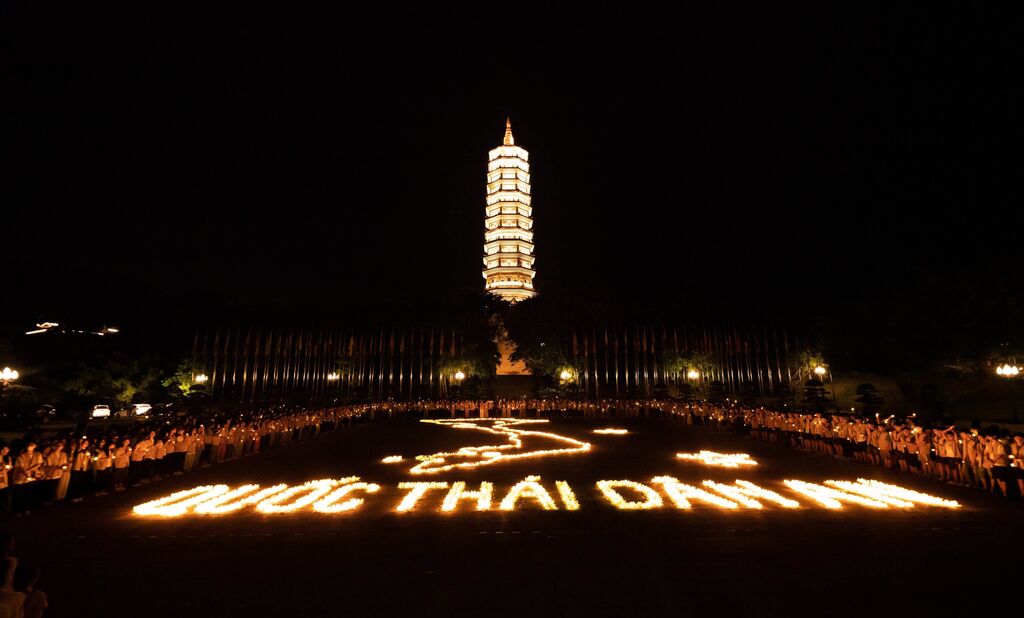 | Illumination de prière pour la paix du monde à la pagode Bai Dinh en juin 2023. |