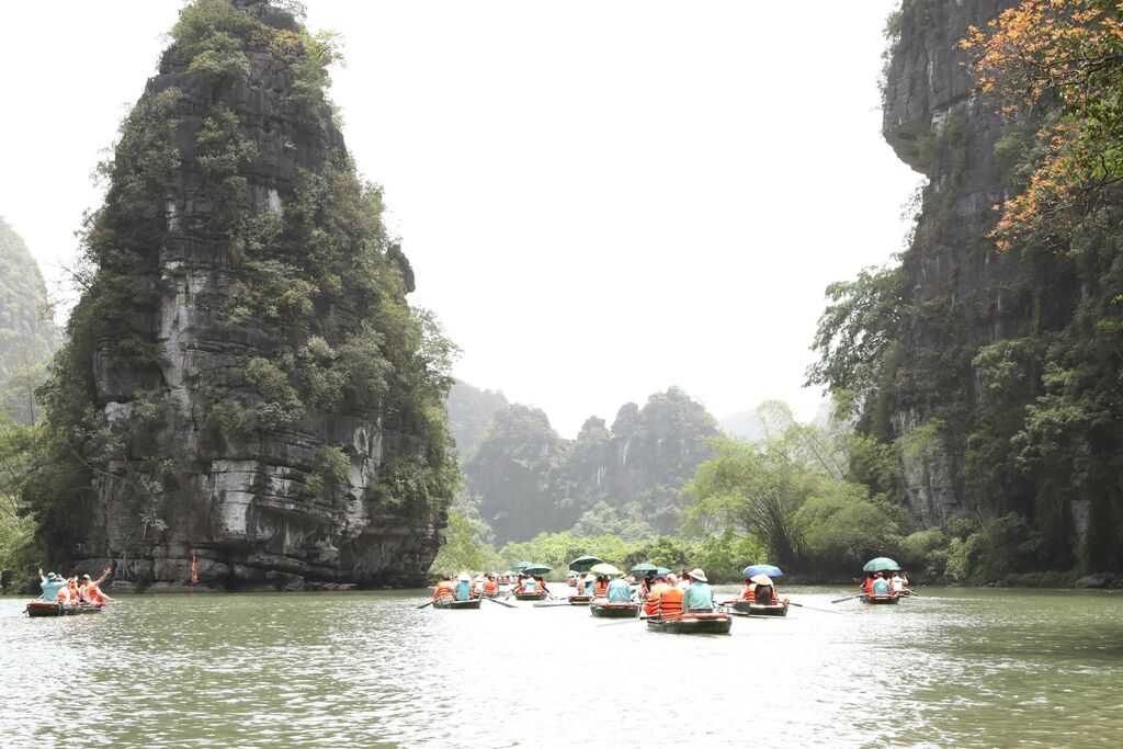 | Les touristes visitent le complexe paysager de Tràng An, province de Ninh Binh (Nord). |
