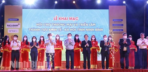 Dans la soirée du 25 mars, au gymnase de Ninh Binh, le Comité populaire de cette province du Nord a organisé la cérémonie d'ouverture de la Foire commerciale et de l'Exposition des réalisations socio-économiques locales en 2022.