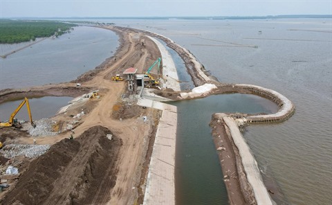 Sur la digue Binh Minh 4, un système de sept écluses est construit, se connectant aux écluses de la digue Binh Minh 3, facilitant l’aquaculture.