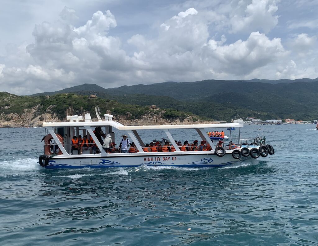 | Touristes dans la baie de Vinh Hy, province de Ninh Thuân. |