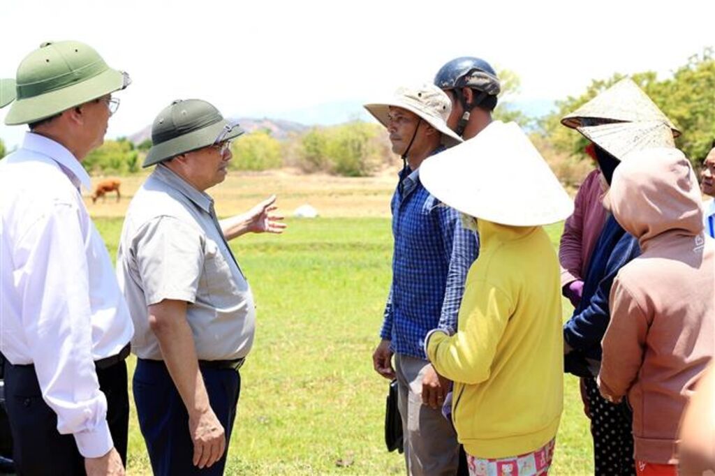 | Le Premier ministre Pham Minh Chinh (2e à gauche) rencontre des paysans du district de Ninh Son, province de Ninh Thuân (Centre), le 28 avril. |
