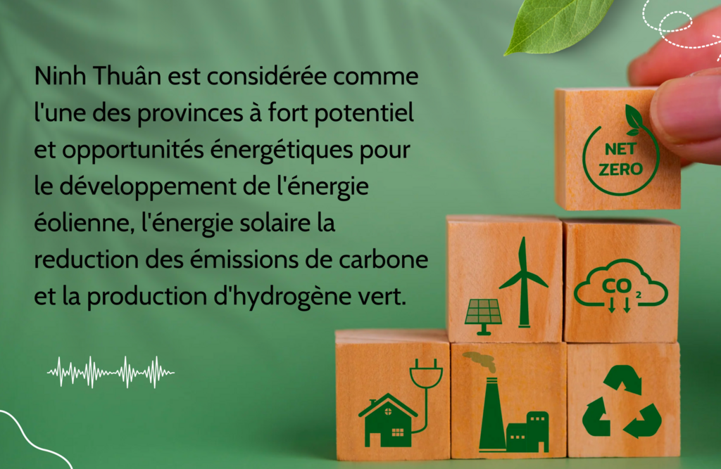 La Résolution du XIVe Congrès provincial du Parti de Ninh Thuân (mandat 2020-2025) fixe l'objectif pour Ninh Thuân de devenir l'un des centres d'énergies renouvelables et d'énergies propres d’ici 2025. C'est pourquoi Ninh Thuân souhaite coopérer avec des partenaires nationaux et internationaux pour promouvoir la croissance verte.
